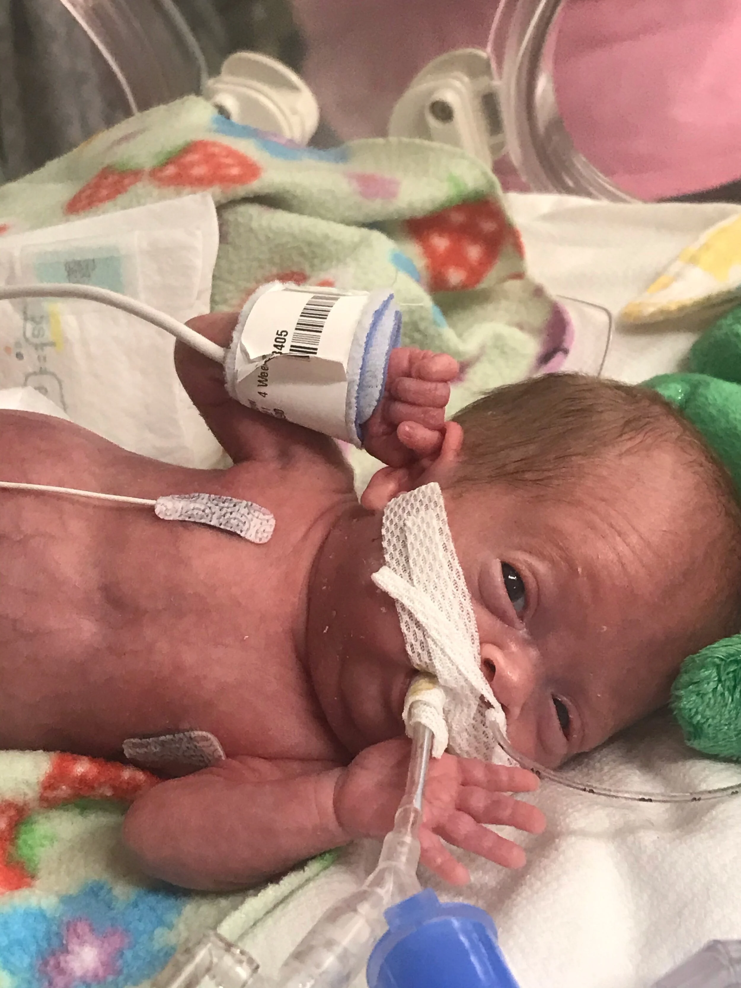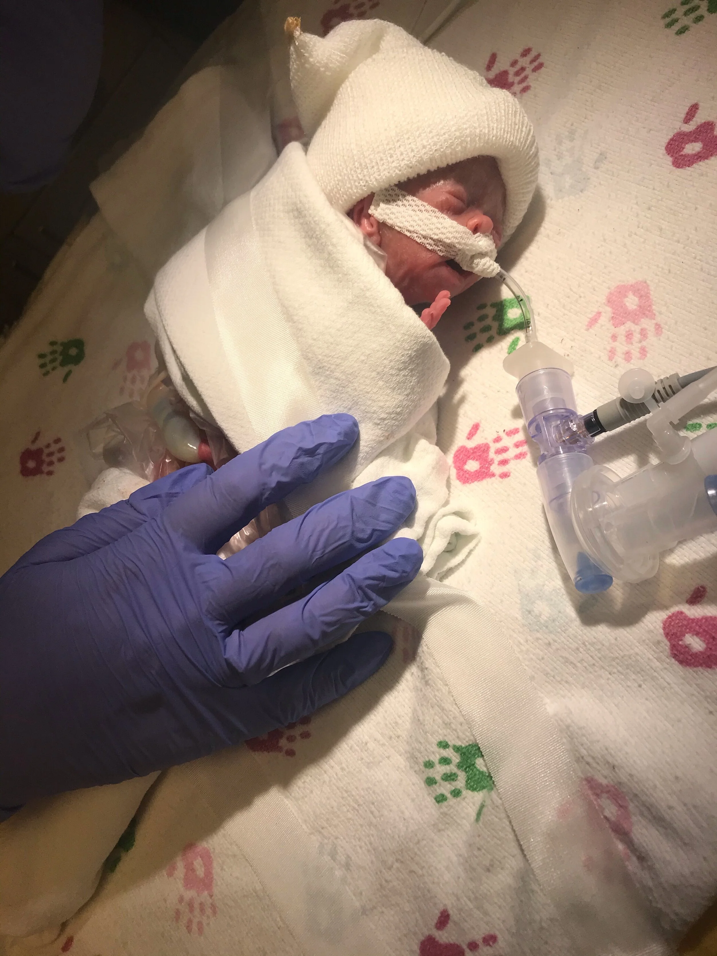 They wheeled me to labor and delivery and told me to call my husband. They got me started on magnesium and gave us just enough time for my husband to arrive. She was born via C-section at 11:08 AM weighing just 1 lbs. 2 oz (about the size of a 23 weeker). They immediately took her to the NICU to get intubated. As expected due to her small size she had severe lung disease. From that point the NICU stay wasn’t too bad.
